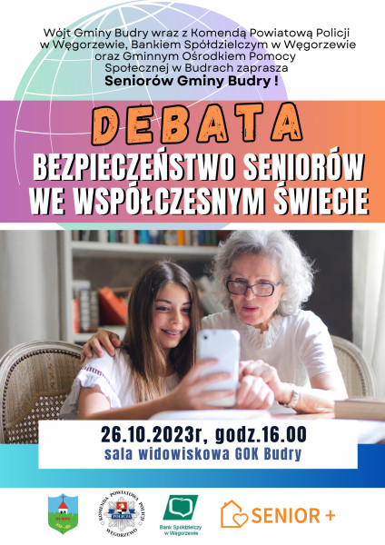 Wójt Gminy Budry wraz z Komendą Powiatową Policji w Węgorzewie, Bankiem Spółdzielczym w Węgorzewie oraz Gminnym Ośrodkiem Pomocy Społecznej w Budrach zaprasza seniorów Gminy Budry na debatę „Bezpieczeństwo seniorów we współczesnym świecie”, która odbędzie się w dniu 26 października 2023 r., o godzinie 16:00 na sali widowiskowej w Gminnym Ośrodku Kultury w Budrach.